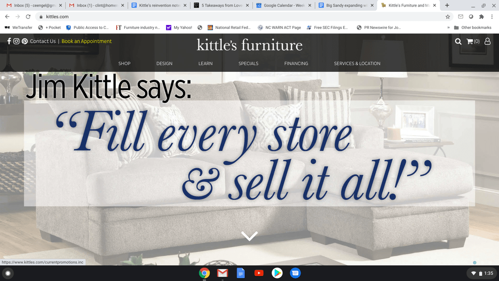 Kittles furniture has an annual sales volume of 2m 4999999.